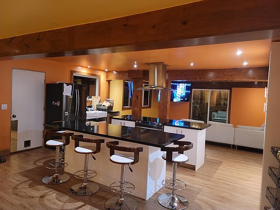 Newly remodeled with new appliances including washer and dryer. Open kitchen with two islands furnished with bar stools. One of the bedrooms is a furnished office. Main and master bathrooms have shower glass. Owner pays Internet.