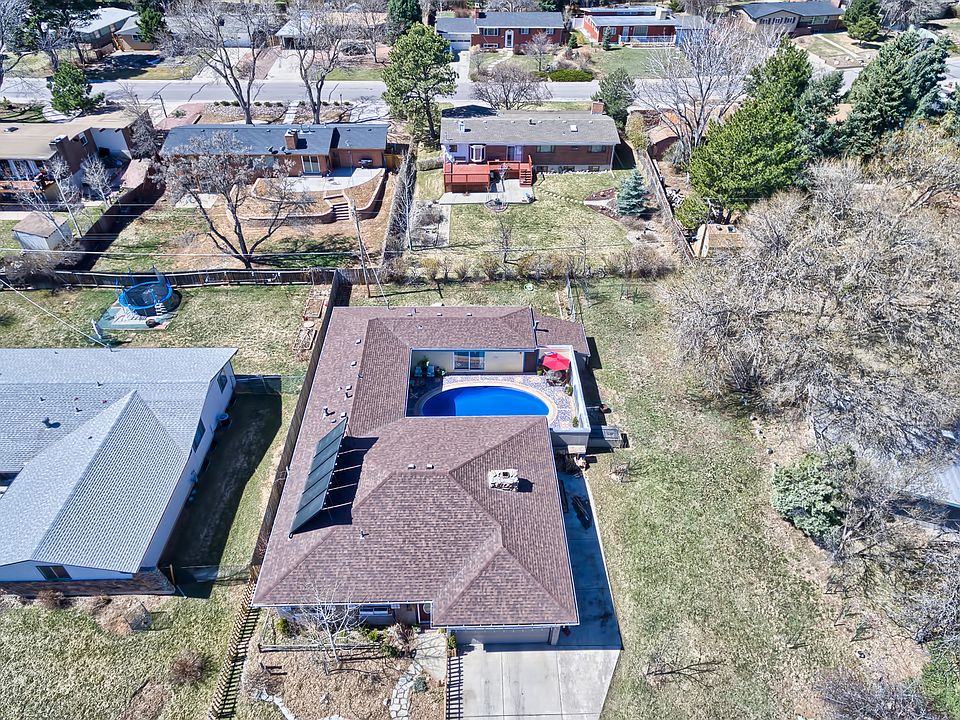 Very Unique Mid Century Modern Home In The Coveted Skyway/ Bear Creek Area. Close To Parks,Hiking,D12 Schools,The Downtown Area,Highways And Shopping. Light,Bright,Fun And Spacious Are A Few Of The Words To Describe This One Of A Kind Home. Just A Few Steps Up From Front Entry Or Garage To An Open,Easy,User Friendly Floorplan ... All On 1 Floor. Home Is Built Around An Enclosed But Open-aired Central Courtyard With Pool And Access From Many Rooms. Four Bedrooms,3 Baths,Study And Oversized Two Car Garage.,Private Fourth Bedroom And Half Bath Located Off Entry Away From The Other Bedrooms Is Currently Being Used As An Office. Convenient Bonus Room Off Kitchen Is Now The Children's Playroom. There Is Additional Concrete Pad Parking On The North Side Of Garage. Also,An Active Solar System For The Household Hot Water Use. Seller Has Not Used The Sauna In Hall Bathroom And Therefore Is Not Warranting The Condition Of It. Seller Will Not Be Making Any Repairs For It To Be Operable. There Is A Filled Swimming Pool. Children Should Be Held By Hand And Not Be Left Unattended In The Courtyard Or Near The Pool.