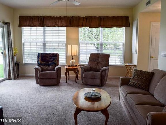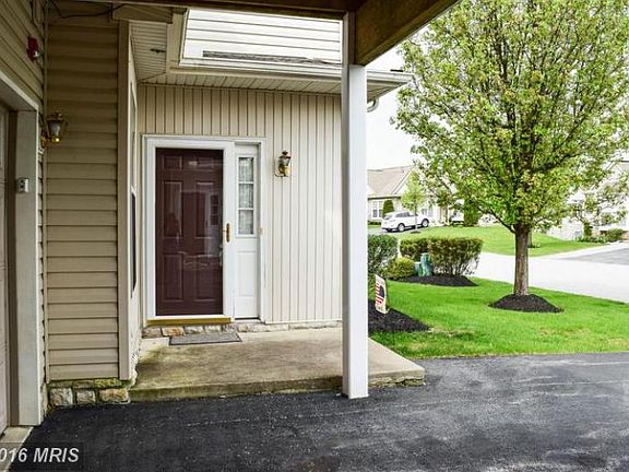 Cheerful, well maintained end-unit villa style condo offers 2 BRs & 2 BAs, ceramic tile Foy, spacious open LR & DR, covered patio, country Kit w/ pantry & big Laundry w/ storage. Large MBR suite w/ tray ceiling, W-I closet, sit area & full BA, all appliances, garage & home warranty. Walk to shops, dining & library, enjoy the maint-free lawn from your pvt patio! I-83, more amenities just min away!