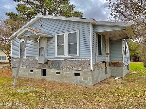 Own a piece of history! This 1941 bungalow dates back to the bombing of Pearl Harbor. It contains 3 bedrooms, a living room, and a space that could be either a large dining room or den. A 15 lite French door separates the living room from the central hall. The home has been vacant for many years. The heirs began a renovation several years ago. The kitchen cabinets were removed, and some of the wall paneling. The most expensive renovation completed is underneath. In 2009 Worth Hare elevated the home and added a new foundation ($30k) . The front and side porch areas still have their original canopies, but the porches will need to be added. A lot of the vinyl siding is missing. The bathroom leaked and will probably need to be gutted. Due to missing porches and vinyl, Edenton Code of Enforcement requires that the new homeowner either repair it or tear it down as soon as possible. Two family members own a small vacant lot behind the property. This back lot has a deeded easement to use the driveway of this property. The back lot has never had a building. The small lane next to the house (Vance Lane) is a private road. Due to condition, this will need to be a cash sale. This home has a long, rich family history. The heirs hope that someone else will fall in love with it and take the reins.