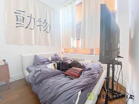 **Rent Stabilized**Located in one of the best spots in Williamsburg, this loft-style building offers a beautiful 1-bedroom apartment with Huge closets Super high ceilings Updated, fully equipped kitchen with dishwasher Spacious bedroom and living area Fully tiled bathroom with soaking tub Roof deck with breathtaking views of Williamsburg and the Manhattan skyline Laundry room on every floor Elevator Live-in super Virtual doorman AC in every room Secure mail and package area Just a few blocks from Marcy Ave station with the JMZ train lines, offering the fastest commute to Manhattan, and steps away from Williamsburg's best bars, restaurants, coffee shops, and more.