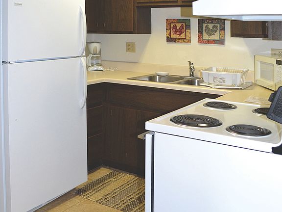 13th month FREE with signing of 12 month lease. *some restrictions may apply Heat, water and sewer included Air conditioning Garbage and recycling removal Appliances including garbage disposal Park-like setting with picnic pavilion and BBQ grill Patios/balconies On site parking, garages available Includes extra storage Laundry room in each building / some in-unit laundry Ample closet space Cats welcome and dogs in designated buildings Short-term and furnished apartments available Professional management and maintenance Includes heat, water, sewer and trash removal. Cats and dogs welcome. Detached garages available for $50/month.