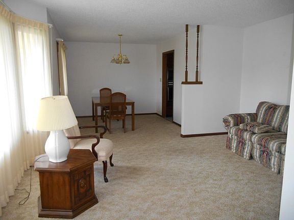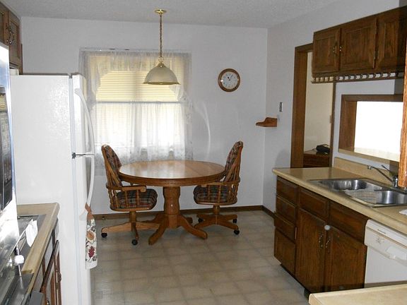 Gracious living, all on the main floor! The eat-in kitchen has a door to the garage and pass-through counter to 12 X 13' family room with sliders to the backyard's concrete patio. The refrigerator, built-in oven, countertop range, microwave and dishwasher all stay in the kitchen with you. The formal dining room is open to a beautiful formal living room with bay window for great natural light. The 12 X 14' Master has a double closet, carpet and Master Bath. There are two more bedrooms on the main floor, plus a full bath with tub with glass sliding doors. Choose from two opportunities for your laundry placement: hookups are available on the main floor or in the basement utility room, whichever works best for you. Also on the lower level: a big full bath with large linen closet, a 13 x 39' room with endless opportunities, a 12 x 10' utility room with lots of storage, and two more good-sized rooms with closets (no egress). Other amenities: great curb appeal with brick accent and big covered porch, foyer, over-sized 2-car attached garage with garage door opener, workshop, high-efficiency furnace. Window treatments included. Nice landscaped lawn with trees and sprinkler system. Built in 1978. Located within walking distance to swimming pool and school.