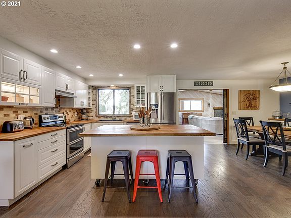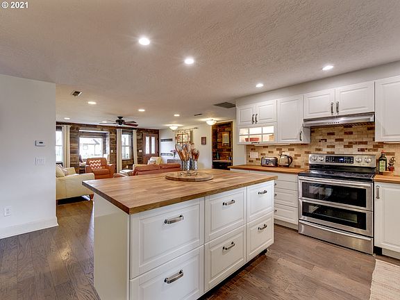 Ideal one-level home on a cul-de-sac in the north Newberg! Open floor plan with spacious living spaces. The recently updated kitchen features a large island, soft close cabinets, butcher block counters, double oven, custom pantry.The kitchen opens to the large living room & dining room. Vaulted ceilings, gas fireplace & skylights in the family room. Lovely covered patio. Less than 1 mile from downtown Newberg, George Fox University, Newberg Public Library, wine tasting/coffee shops/restaurants!