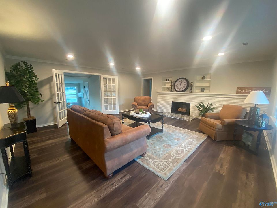 - Features: Crown Molding, Fireplace, LVP, Recessed Lighting