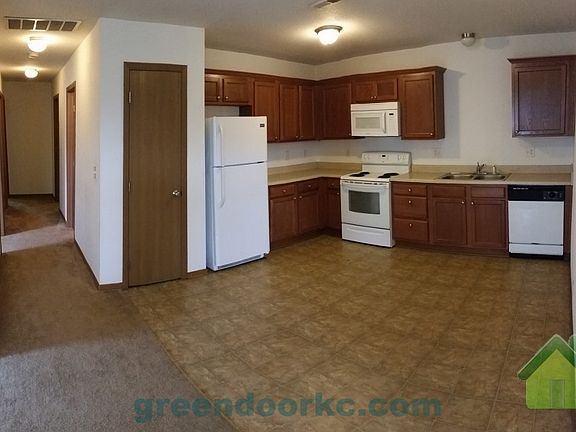 Beautiful 3 bedrooms, 2 bath ranch duplex located on a quiet Cul-de-sac. Conveniently located near shopping and restaurants. Less than two miles from Hwy 49 for a quick commute. A single car garage provides space for your car and storage. Lawn care provided. Call Brian at 913.579.7427 for more information, or apply online at greendoorkc.com