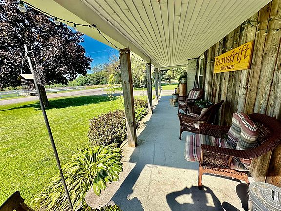 Walk back across the street to see the beautiful front covered porch designed with tasteful rustic barnboard wood and plenty of room for relaxing or having your morning coffee