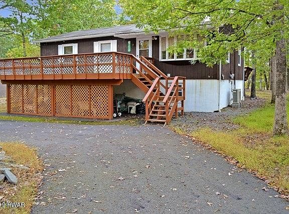 Raised ranch on a private cul-de-sac in the beautiful amenity filled Masthope Community! This home features 4 bedrooms, 2 baths, huge family room, laundry room, large front deck & rear screened porch! Walk out of the finished basement onto your level lot with paved driveway. Close proximity to the ski slope, pool, market, fitness center and restaurant. Other amenities include beach, horseback riding, motorboat friendly Westcolang Lake, horseback riding, and access to the Delaware River. Community central sewer and water.