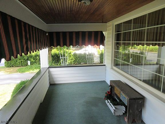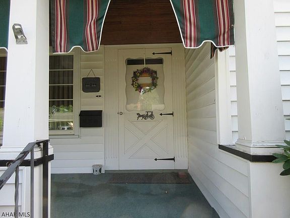 Hollidaysburg Borough 1.5 story vinyl home with 1 car detached garage w/opener. Features first floor living with 2 bedroom, 2 full baths, formal living room with wood burning brick fireplace and eat-in kitchen with adjoining dining area all on first level. 2nd floor is 3rd bedroom and office/den. Large relaxing front porch and peaceful neighborhood. Updated with new furnace 2009, new roof 2011, new vinyl siding 2013, new sewer line 2007. Check it out!