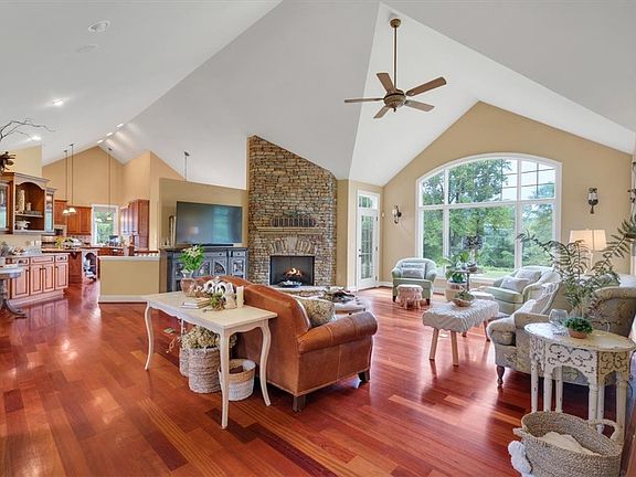 - Bookcases, Built-in Features, Tray Ceiling(s), Ceiling Fan(s), Cathedral Ceiling(s), Dual Sinks, Fireplace, Granite Counters, Garden Tub/Roman Tub, High Ceilings, Heated Floor, Bath in Primary Bedroom, Main Level Primary, Smooth Ceilings, Separate Shower, Cable TV, Vaulted Ceiling(s), Walk-In Closet(s), Walk-In Shower, Window Treatments, Workshop