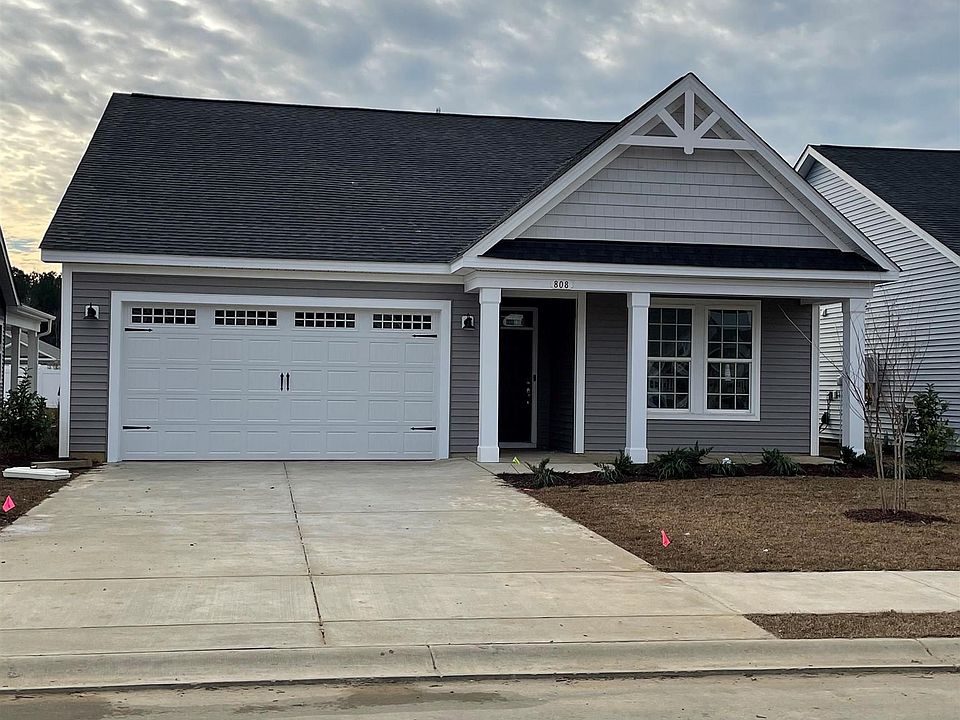 The Cherry Grove is a spacious retreat complete with coastal-inspired architectural accents, an outdoor covered porch, and a large great room. This home offers 3 bedrooms and 2 bathrooms making it the perfect fit. Enter the Cherry Grove from a covered front porch or two-car garage and easily unload in a large drop zone area with a bench for seating. Stroll through the laundry room into the great room and connecting dining area, which makes for an enormous space perfect for entertaining. The owner's master suite, among 2 additional first-floor bedrooms, features his and her walk-in closet, tray ceiling, double vanity, and deluxe seated shower option. All your needs and wants are within reach at Heritage Park, close to medical and professional services, dining and entertainment, recreation and sports, Cherry Grove Beach, North Myrtle Beach, and even schools are close by with easy access from Hwy 9. Come see for yourself!