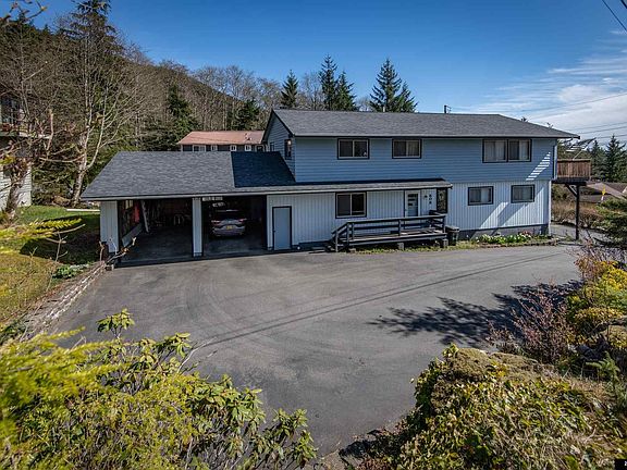 In town family friendly home includes gourmet kitchen with high-end Thermador refrigerator, gas grill w/custom settings, ex large electric oven and commercial grade range hood. Kitchen has Caesar stone countertops, a large island. custom cabinets with built in wine racks, everything the gourmet needs for entertaining guests or creating the perfect family meal. Off the kitchen is a sunroom ideal for growing plants or a great hideout for the family cat. Large pantry off the kitchen includes W/D. Formal dining area adjacent to kitchen with hard wood floors and an unrestricted view of Tongass Narrows. Large comfortable bright living room with plenty of windows to take advantage of evening sunsets and water views. Full bathroom with jetted tub upstairs. 2 large bedrooms upstairs plus master bedroom with ensuite bathroom. Downstairs is perfect family room setting complete with kitchen and full bath and includes two large bedrooms and a separate entry. This area can be easily converted to a mother-in-law apartment with just enough privacy for that special "senior' and yet close enough to be part of the family when the mood strikes. Large attached two car garage with asphalt driveway and parking area. Enough room to park your boat and all your outdoor toys. Attached to the apartment is a converted garage perfect for an exercise/kraft/project room which would make a fantastic Man-Cave. Home is heated by a "newer" energy efficient boiler. Outside there is just enough grass to justify owning a lawn mower and plenty of area for plants and that special someone with a green thumb. Home is in town near churches, schools, and shopping and yet projects a feeling of privacy, security and grandeur. Must see to appreciate.