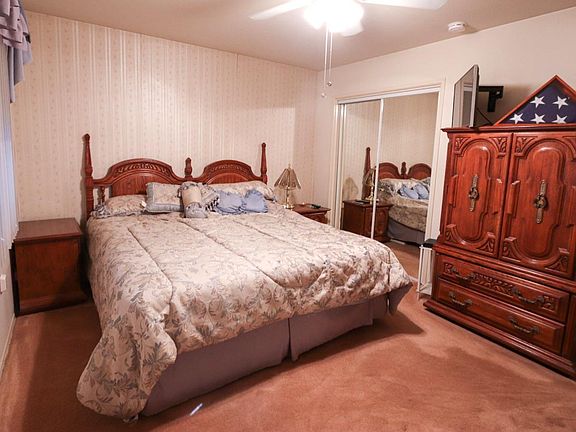 Welcome home to this cute 2 bedroom 1 3/4 bath home located in a peaceful 55+year adult community called Kern City. Features include a spacious living room,formal dining area, indoor utility room,ceiling fans throughout,dog friendly with doggie doors leading to backyard and hobby room, detached craft/hobby room, storage sheds,wide side yard for possible small boat or trailer, and spacious backyard with cement block fence. Located on quiet street close to shopping, post office, medical, bus lines, banks, restaurants and more. The Kern City community offers a pool,spa, library, gym, wood shop and more.Call for your appointment today!