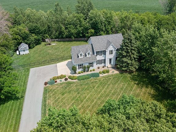 Welcome to this amazing property just off the beaten path in Kelley, Iowa surrounded by beautiful trees and rolling farmland that will create a peaceful and private oasis just for you. Located between Ames and Ankeny/Des Moines, you'll never have far to commute as you enjoy the tranquility this home offers. The main level boasts refinished hardwood floors, an office space with built-ins, and tons of natural light that pours in through the exceptional Marvin double-hung windows. Upstairs you will find the master with en-suite bath and walk-in closet, 3 spacious bedrooms, and a full bathroom. The basement awaits your personal touch with more than 1,000 square feet ready to be finished and egress windows already installed. The fenced-in backyard is the perfect setting to host your next family gathering as you enjoy almost 1 acre of space for yard games, barbecues, and a bonfire. With plenty of room for a workshop in the attached and heated garage and a storage shed for other hobbies and toys, this home checks all the right boxes. Tons of work has been done over the last 5 years including a new furnace, A/C, siding, roof, driveway, and much, much more. Be sure to request a list of all the updates from your agent so you can fully appreciate the peace-of-mind this home offers. With small-town Iowa charm just a short drive away from big city amenities, you won't want to miss out on owning this incredible property! Schedule your showing today!