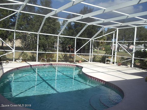 W-Melbourne super location on this screened, & heated pool with a BRAND NEW Pool pump and huge covered patio area. ROOF is only 1 YEAR OLD! ALL windows & doors have ACCORDION HURRICANE SHUTTERS. Tiles throughout living area and laminated flooring in bedrooms. Covered screened front porch. The kitchen has newer stainless steel appliances and lovely bright eat in area.There are several tropical fruit trees and a well feed sprinkler system. Very bright & colorful Wall paint,