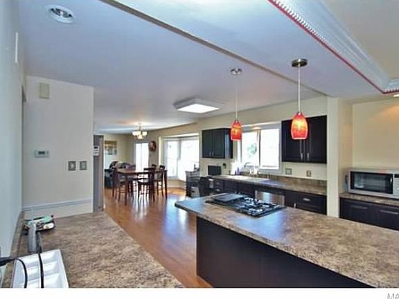 This awesome unique home in fantastic Parkway South Schools is the perfect family home! Rare find: the UPDATED KITCHEN has what today's buyer wants and needs - GRANITE STYLE TOPS, huge CENTER ISLAND, CUSTOM CABINETS including a planning desk, center island GAS COOKTOP, STAINLESS APPLIANCES, High-End lighting, ENORMOUS PANTRY SPACE, even the locks and pulls are special! Best of all, the walls have been blown out to provide more OPEN KITCHEN - BREAKFAST ROOM - GREAT ROOM space that is the focal point of family life. FOUR LARGE BEDROOMS fill the upstairs with a hall bath and amazing Master Bath which has a separate tub and shower, marble floors, double sinks and lots of room. The other bedrooms are a great size and clean as a whistle! The FINISHED LOWER LEVEL is fantastic - ceramic floors with inlay design, wet bar with fridge, recreation room, and a sliding door for walk-out to the patio and COMPLETELY FENCED back yard. This house is priced to sell quickly, so don't wait!