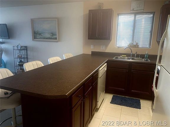Great Relaxation weekend get-away in the heart of Osage Beach. Whether you want the convenience of shopping, night life entertainment, or the tranquility of the lake, this turn key 2 bedroom/ 2 bath is your answer. The kitchen represents newer cabinets, very cozy and efficient. This condo has the best access to the pool and the boat dock location with a walk off side deck to both of these amenities. Large front deck that is expanded to include the side deck to a gate for privacy.10X28 dock slip with a hoist included in price.....Master Bedroom area includes a walk in closet...this owner uses it for a storage for tools, etc. There is another closet in the MBR bathroom. Excellent opportunity to own your place at the lake for an affordable price. It is your place to call HOME.... Owner is leaving 2 blue kayaks on the dock for the new owner. What a DEAL