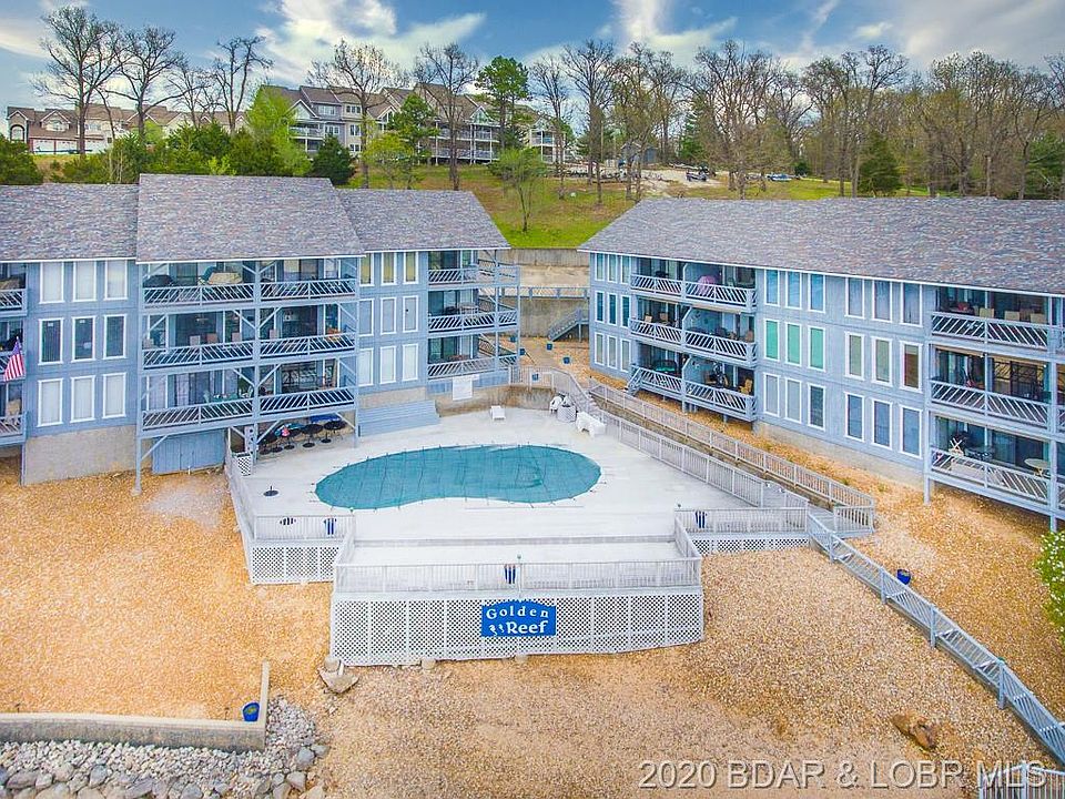 Check Out this Fully Furnished One Bedroom Condo at the highly sought after Golden Reef Condo complex in the heart of Osage Beach. These units don't come available often & when they do...they sell FAST. The Golden Reef Complex is a small, well-kept complex off Passover Rd. close to some of the best restaurants, shopping & entertainment at the Lake of the Ozarks! This unit comes completely turnkey and has been recently updated in 2019 with a new HVAC, flooring, and appliances & more! The condo is just a short walk from your 10x24 slip & the saltwater community pool that sits lakefront with beautiful views & plenty of decking to entertain & soak up the summer sun. Golden reef sits on the 1MM of the Grand Glaize Arm in the State Park & boasts some of the best water for boating, skiing and coving out the lake has to offer. This unit is the perfect lake retreat or would make an excellent VRBO for the savvy investor. Check out the Virtual Tour to get a Birds Eye View of this incredible unit!