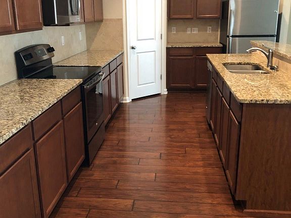 1-story home, open floor plan, on premium homesite; 3 BR/2 BA; vaulted ceiling in family room; formal dining room with coffered ceiling; natural gas fireplace, wood laminate flooring; large kitchen that opens up to family room, features stainless steel appliances, granite countertops, ceramic tile backsplash; master suite includes vaulted ceiling, separate garden tub/shower, double vanity with granite countertop; covered back porch, perfect for entertaining; privacy fence with walk gate; architectural shingles, full gutters; HauSmart features galore! MLS #382933