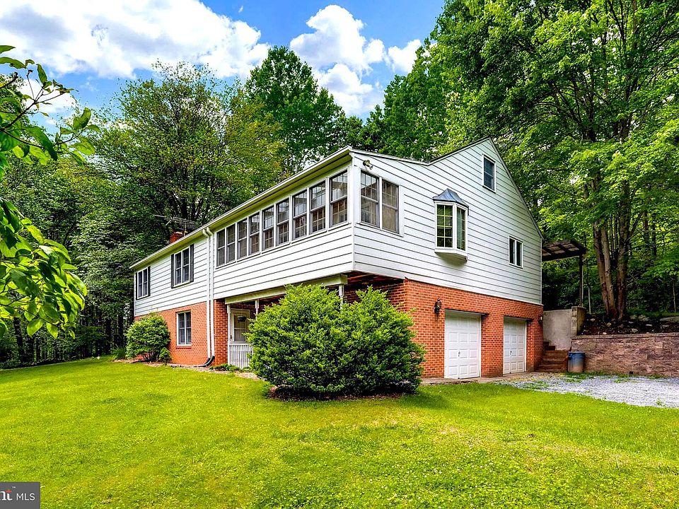 The privacy you are yearning for, yet close to all conveniences! Lots of space with 4 bedrooms and 2 full baths on Main level. Sunporch for relaxing overlooks partially wooded acreage. 3rd full bath and possible au-pair suite on lower level. 3.85 private acres provide lovely, secluded setting adjoining Morgan Run Stream - Ideal for hikers and fishing enthusiasts! Separate XL 2 car garage is great for the car buff or a work shop. Huge storage building with concrete floor on back of property. New architectural shingle roof in 2013, Andersen windows. Full walk up attic. Perfect home for nature lovers! No HOA! No Restrictions!