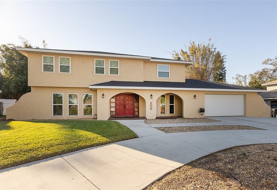 Lake Elbert 4/3 salt water pool home with brand new 2025 roof, energy efficient windows, circular drive and backyard entertainment oasis! The modern kitchen is packed with upgraded granite counter tops, a double ice maker refrigerator, ambient under counter lighting , two pantries and bright display wood cabinets. The large dining room extends out from the granite breakfast bar perfectly positioned for hosting parties. The downstairs flex living room/ home office has ceiling to floor picture windows framing the lovely covered front porch and established neighborhood outside. The cozy wood burning fireplace in the family room opens up to an epic outdoor entertaining oasis. As you step out from the new sliding glass door into this privacy fenced entertainment space, your buyer will be impressed by the pool sundeck , hot tub and three deck pavilions with tv hook ups, fire pit gathering space and an upgraded wood planked lanai ceiling. After viewing the entertainment oasis out back, retreat upstairs to the extra large bedrooms that can accommodate multiple family members. The sprawling second bedroom can be converted to a media room or in-law suite. The conveniently located half bath houses a brand new energy efficient washer/ dryer set that will convey with the property. The over sized garage can house extra big SUV'S, boats, motorbikes and has a handy utility sink. The out door keg refrigerator can convey. An RV camper can be popped up on the huge extended driveway pad and ready for camping trips. The brand new Lake Elbert Elementary School is under construction. Your buyers with families will fall in love and want to raise their family at 808 Lake Elbert Ct! Book your showing with Showtime now.