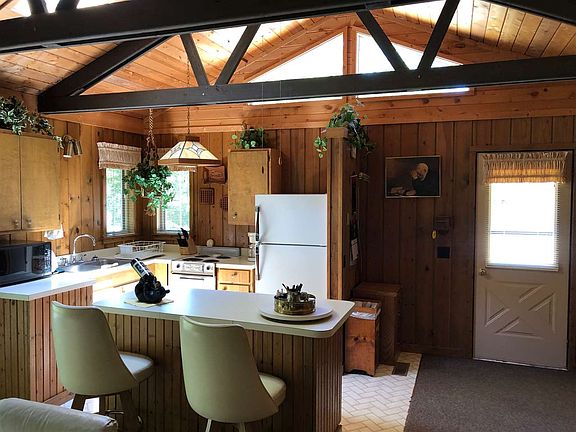 HIGGINS LAKE: Adorable 2 bedroom, 1 bath home on full basement. Features include vaulted ceilings in kitchen & living room area with exposed beams, Anderson windows, vinyl sided. The open floor plan gives the home a much larger feel. Plenty of closet space on the main level plus bonus storage in the full basement. This home comes fully furnished. Detached 24' x 30' garage to store all your up north toys. Only minutes to Higgins Lake. Situated on a wooded lot with a very private setting. Priced to sell !