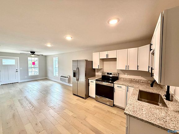 GADSDEN- RENOVATED- Beautifully renovated 2BDRM/1BTH home conveniently perched on a level oversized lot. Light & airy family room open to kitchen! Kitchen w/ GRANITE, new cabinets & stainless steel appliances! Primary bedroom w/ HIS & HER closets! Spacious laundry. Front porch great for relaxing, oversized side yard great for children & pets. Pea gravel rear area perfect for BBQ's and overflow parking. New siding, roof, flooring, wiring, plumbing, paint, heat/air etc. $109,900. Call today!