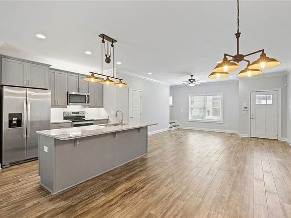 - Breakfast Area, Ceiling Fan(s), Eat-in Kitchen, Kitchen Island, Pantry, Window Treatments, Attic