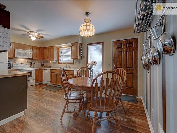 Charming & cozy, this 2 bdrm, 1 bath ranch in NW Olathe is cute as a button w/ modern paint colors, good storage solutions & premier schools. Home features a large eat-in kitchen w/ cast iron sink, added section of cabinets w/ butcher block. Spacious master w/ huge closest-you'll be amazed at the storage! You'll love the updated bathroom & laundry room. Newer floors in entry, kitchen, bathroom & smooth ceilings throughout! Enjoy hanging out on the deck & fenced yard. Seller paid home warranty! OPEN SAT & SUN 1-3!