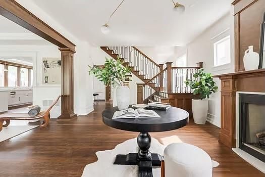 The grand entryway greets you with the original front door and a charming fireplace, framed by still-functional pocket doors. The home effortlessly combines the luxury of open-concept living with intimate, cozy spaces.