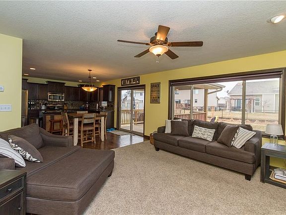 Don't miss this beautiful two-story home in a beautiful Grimes neighborhood. Tons of updates in this newer home built in 2012 including, granite countertops, stainless steel appliances, hardwood flooring, tile and much more! Large bedrooms with plenty of closet space and room to grow. Enjoy weekend nights on the wonderful covered deck that leads out to an additional patio, fire pit and fenced in backyard. Gorgeous finished lower level with bathroom and one-of-a-kind built in bar including full-size refrigerator and wine fridge. This home has been meticulously cared for and is worth a look in person!