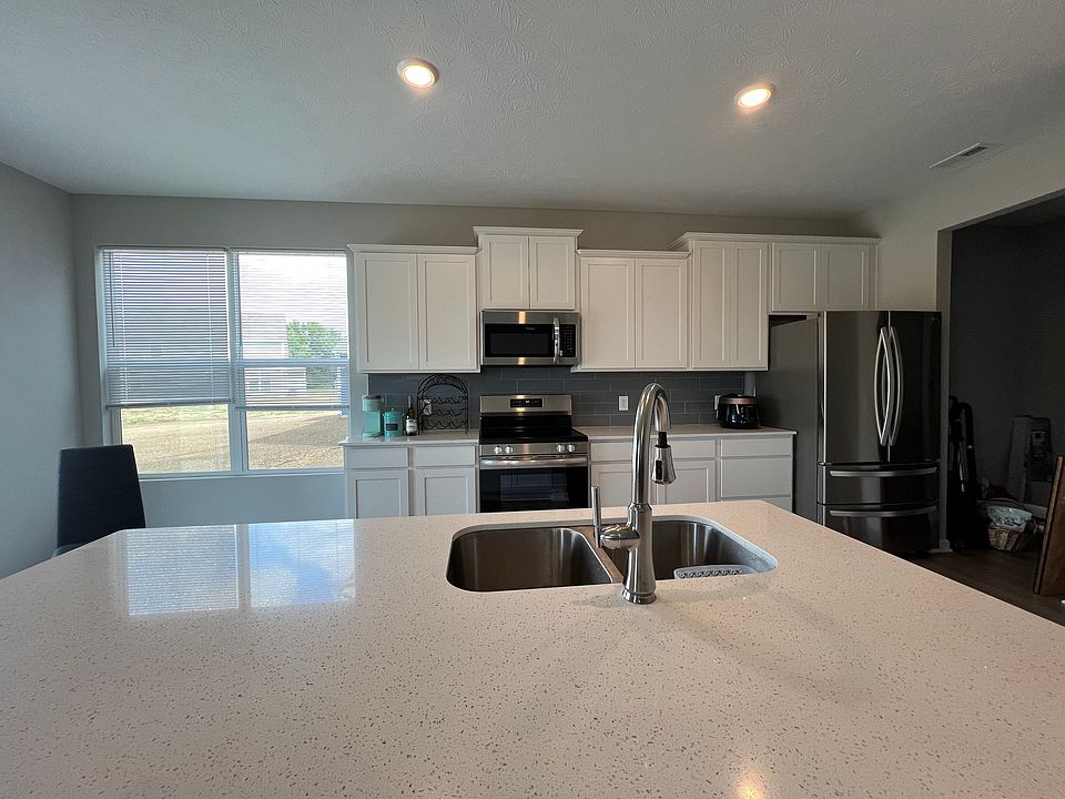 Stunning Home in Webster Crossing East - Modern Comfort and Style! Discover this beautiful, Less than year old home in the desirable Webster Crossing East neighborhood, offering modern updates and exceptional conveniences. With 7 spacious bedrooms, 4 bathrooms, and a 2.5 -car garage featuring 4-foot extensions, this home is designed for comfort and functionality. Main Level: 9-ft ceilings with oversized 6-ft windows, creating a bright and airy space. Open and spacious living room with LVP floor installed on entire 1st floor. Gourmet kitchen with quartz countertops, beautiful backsplash, and a large island with seating. Stainless steel appliances. Upper Level: Main bedroom with a luxurious ensuite bathroom. Four additional bedrooms and a versatile loft, perfect as a home office or playroom. Outdoor Living: Generously sized backyard with a pond. Lovely patio for outdoor dining, entertaining, or relaxing. This home is ideally located near shopping and dining, making it perfect for everyday convenience. Don't miss the chance to make this stylish, move-in-ready home yours. Schedule your showing today!
