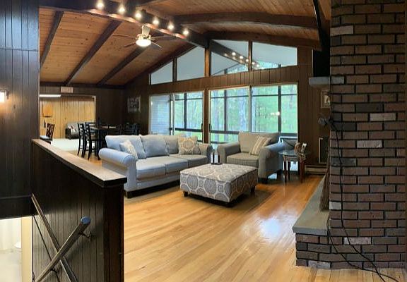 COMFY AND COZY!!! This large family getaway has an inviting upper level, open floor plan, with kitchen dining living room areas. Living room boasts wood burning, brick-faced fireplace. Spacious family room with walk out rear deck and seasonal golf course views. Newer kitchen with granite counter tops, stainless appliances and walk-in pantry. Enjoy three seasons of entertaining in your oversized screened porch. An upper level master bedroom includes an attached bath. Lower level features three bedrooms, full bath, laundry room and attached 1 car garage. Newer roof and septic. All this in an amenity-filled gated community. One indoor pool, two outdoor pools, state of the art gym, playground, tennis courts, dog park, beaches, library and much more. Schedule before this one is gone.