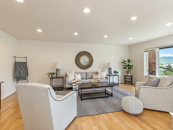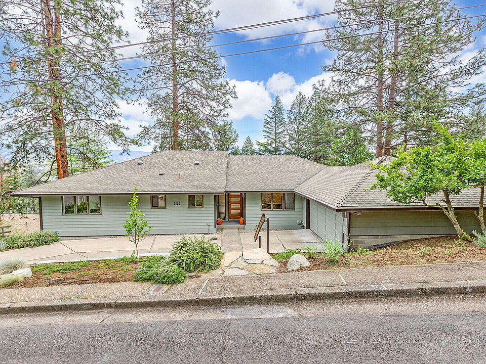 Wonderful, contemporary, single-level home with mountain views in a fantastic location above SOU. This well cared for three bedroom, 2 ½ bathroom home has fresh interior paint, many recent upgrades and is absolutely move-in ready. The spacious living room is filled with light and has a large picture window with views of Pompadour. The eat-in kitchen boasts cherry cabinets, granite countertops, and stainless appliances. The adjoining space can be used as a family room or eating area and opens to the large deck with views- perfect for entertaining and indoor/outdoor living. A dedicated mud/laundry room connects to the garage. The bedrooms are separated from the living area, creating privacy. The primary suite has a walk-in closet and ensuite bath with custom tile. The large daylight basement is a great space that has its own entrance and would be great for a studio, home office, or possibly conversion to an ADU (check with city). Truly a wonderful opportunity!