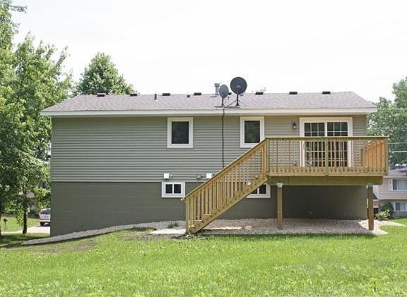 This 1980's home has been tastefully updated. There is great curb appeal with the new sage green siding, red door, new windows and new landscaping. Once you step inside you are greeted by the earthtone color palette and new lighting. The kitchen has been refreshed with new countertop, appliances and cabinet hardware. The dining room and kitchen has new vinyl flooring. The sliding doors lead to the new larger deck for outdoor dining and relaxing on summer evenings. The living room has new carpet and the entire interior has been repainted. There are 3 bedrooms on the main level and a full bath. The lower level has a family room, den/office and a new one half bath. The furnace is new and an air exchanger has been installed. There is a washer/dryer hookup in the lower level. The one car garage is extra deep to store bikes, lawn mower, etc. Close to parks, bike trail and downtown. This home is move in ready!