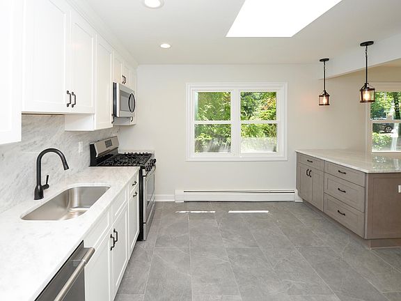 RENOVATED, PRIVATE, SET BACK FROM ROAD CONTEMPORARY BI-LEVEL WITH 5 BEDROOMS AND 4 BATHS. VAULTED CEILINGS, SKYLIGHTS AND HARDWOOD FLOORS GIVE THAT OPEN FLOW AND CONNECTION TO NATURE. UPPER LEVEL DINING ROOM HAS ACCESS TO A LARGE DECK PERFECT FOR ENTERTAINING! LIVING ROOM, BRAND NEW KITCHEN, MASTER SUITE, 2 BEDROOMS AND RENOVATED HALL BATH COMPLETE THE UPPER LEVEL. THE LOWER LEVEL HAS BEEN TOTALLY RENOVATED WITH A LARGE FAMILY ROOM WITH SGD TO THE YARD, TWO MORE BEDROOMS (ONE WITH ITS' OWN BATHROOM), LAUNDRY AND A FULL BATH. LARGE FENCED YARD WITH NEW PAVER PATIO, NEW LANDSCAPING, AND MATURE TREES FOR EXTRA PRIVACY. NEW SIDING AND WINDOWS. CLOSE TO ELEMENTARY SCHOOL, EASY COMMUTE TO NYC BY CAR, BUS OR TRAIN. TENANT RESPONSIBLE FOR UTILITIES,SNOW, AND TRASH/RECYCLING LANDLORD WITH TAKE CARE OF GARDENING.
