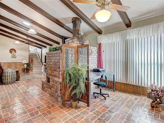 Check out this house ONLY if your interested in a unique foot print as you floor plan. If you run with the pack, looking for an open floor plan, this is not for you. Totally remodeled in 60's and recently given new breath with high end, energy efficiency products that reduce the carbon footprint close to 50% in electricity, 30% in gas and saves 30% annually on home owners insurance with a hail resistance roof. You will get what you pay for with this universal designed house plus special extras such as a concealed EF5 safe room/storm shelter in the home, large 1.25 MOL acre lot, covered RV parking, storage shed,dual zone perfect temp HVAC w/humidifier, Tankless water heater, and updated main beaker box. The Train tracks that are behind the property are not active line and will only occasionally be used to park a train on. If you are serious about an efficient home and going green, come check out this home!Home is under contract taking back up offers.