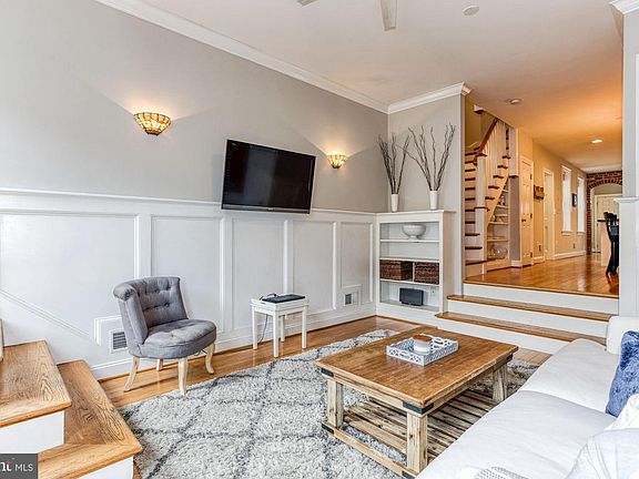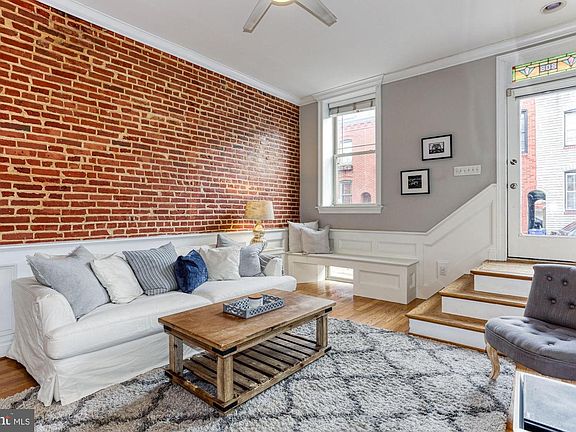 Gorgeous rowhome in the heart of Canton boasting classic high end finishes, design-inspired features, and upgrades throughout! Prime location on a quiet street with ample parking; Sunken living room with striking moldings and exposed brick wall; Gleaming hardwood floors and custom built-in shelving; Gourmet kitchen equipped with sleek stainless steel appliances; Granite countertops and ample 42" cabinetry; Primary suite with walk-in closet and French doors leading to the luxurious en-suite bath; En-suite bath with dual pedestal vanities and frameless glass enclosed shower; Generously sized second bedroom and full bath complete the upper-level; Third floor entertainment area or optional 3rd bedroom with dumbwaiter and wet bar opening to two-tiered deck with private hot tub; Recent Updates: HVAC, Washer and Dryer, Gas Oven/Range, Exterior and Interior Paint, and More!