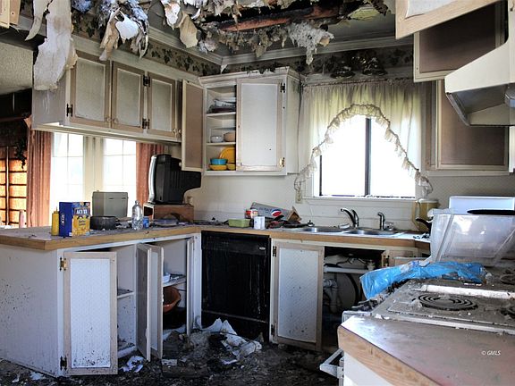 Developed 15,000 square foot lot complete with mature trees, 30X40' heated double garage with workshop area, 12X18' shed and an underground sprinkler system. The home was damaged by fire but could possibly be rebuilt or removed and the foundation used for a new home. There is currently a two story home with a 960 square foot basement. Electrical, plumbing and HVAC systems have not been checked or verified as to condition. Buyer will need to consult with his own contractors regarding rebuilding. Value is being given to garage, shed, utilities and developed lot.