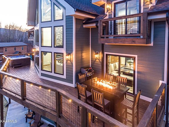 NEW FULLY FURNISHED & TURNKEY CABIN W/ STUNNING, UNOBSTRUCTED MTN VIEWS! Cabin is currently rented and projected to make 250K for a full calendar year. Walking in the door, you'll be in awe of the T&G ceilings, scissor trusses, floor to ceiling fireplace & windows emphasizing the views of Mt LeConte. The main level features an open concept in the oversized living room, well-appointed & fully-stocked kitchen & dining room, a master suite w/ bath & a twin over twin bunk area. Upstairs you'll find a spacious master suite w/ a stunning bath & two more rooms, full bathroom & loft w/ sitting area. Downstairs you'll find a wet bar & open game area w/ a pool table, shuffleboard, air hockey, skeeball & PacMan table. Downstairs you'll also find an oversized movie room, workout area, kids play area, double twin over full built-in bunk area & a full bath. Out back, the cabin features an expansive deck w/ an oversized hot tub & irresistible fire pit table, a patio w/ Adirondack chairs great for relaxing & taking in the view & a Lifetime play set. Property is located in the upscale & highly desired Chalet Village, which features 3 clubhouses, pools & tennis courts. Call today for your showing to make this breathtaking cabin yours today!