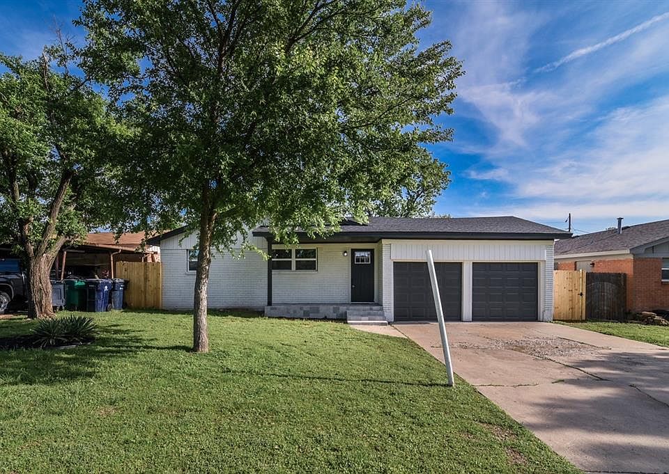 Fabulous remodeled home!. This home features 3 bedrooms, 1 bath, 2 car garage with an extra large family room. The kitchen has recessed lighting, quartz, backsplash, and painted cabinetry.....plus all silver steel appliances! The bathroom has a toilet, sink, white quartz, tile, and lighting. Plumbing and electrical up to code with city permits on electrical and plumbing. Beautiful refurbished wood floors and tile on kitchen and bathroom.. Front landscaping and exterior paint give the home a very peaceful vibe. Close to shopping, with easy access to I-35. This home won't last long, so schedule your showing now!