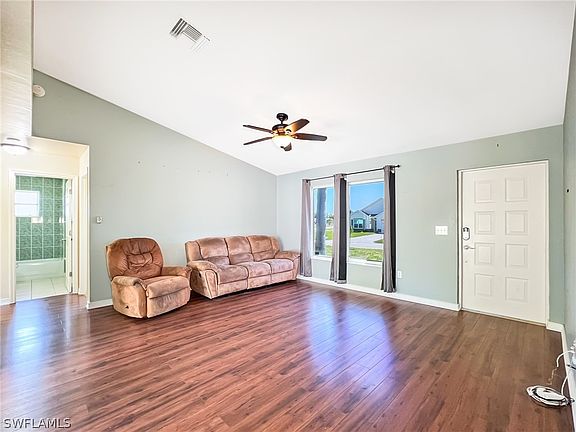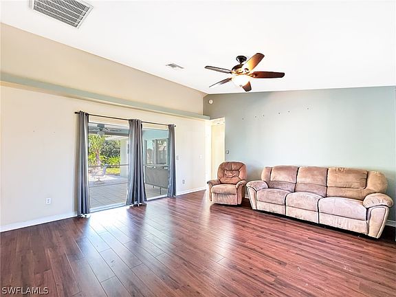 Welcome to your Cape Coral pool home! Located in one of the best areas in Cape Coral you will love the ease of shopping, commuting, and eating out. No carpet here! The home features solid flooring throughout the entire house which makes for easy clean up. The open living room with vaulted ceilings and large patio door gives the home an open feeling. The kitchen comes with newer appliances and lots of counter space to make cooking a joy. Entertain your family or friends while they sit in the pool and enjoy the summer sun. The yard is large enough to have lots of friends and family over for BBQ's. The master bedroom features a large walk-in closet to store your clothes and treasures. Bring your furry friends and don't worry about them wandering off because the back yard is fully fenced. Looking for storage space... There is a huge shed where you can store all of your items or make a man cave or have a she-shed! Not in a Flood Zone! There is dedicated space on both side of the house to park your boat or RV. Assessments for this home are in and paid (normal in this area is about $5000)! Roof 2017, Shed 2019, fence 2015.