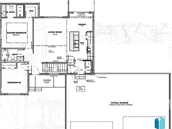 • Master Downstairs, Main Floor Laundry, Master Bath, Tray Ceiling(s), Vaulted Ceiling(s)