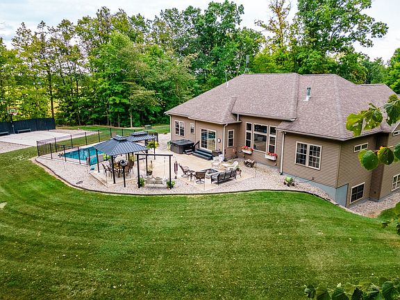 This home has so much to offer. Let’s start with the private Back-Yard Oasis. Large concrete patio area, inground heated pool with black iron fencing, hot tub, firepit, gazebo’s and a basketball 1/2 court all on 1.16 acres, with access to the 8 acre Spring Haven Lake. Close to town, but with a country feel. From inside the home, you can see the backyard through the beautiful windows. The home offers 5 bedrooms, 3 full bathrooms and 2 half baths. The main floor offers an open concept between the living room and the kitchen, with a gorgeous stone and shiplap gas fireplace capturing your attention and providing that cozy, warm feeling. The kitchen is perfect for that chef in your family, large island, and lots of cabinet space for storage, new subway tile and rock back splash. Best of all, the pantry includes a built-in prep bar with additional storage. Master bedroom and bathroom that includes a walk-in tiled shower, double sinks, walk in closet. 2 additional bedrooms, another full bath with double sinks, ½ bath, a den and a oversized laundry room with utility sink and tons of storage. The full finished daylight basement with 2 bedrooms, full bath, ½ bath, 2nd kitchen, a 6th bedroom (with no window), 2nd laundry room with storage. The gas forced air furnace has 3 thermostats allowing you to control the temperature separately on the main level, in the master bedroom, and down in the basement. 3 car attached garage with pull down attic access for more storage. This is truly a gem! Come and see it before it’s gone!