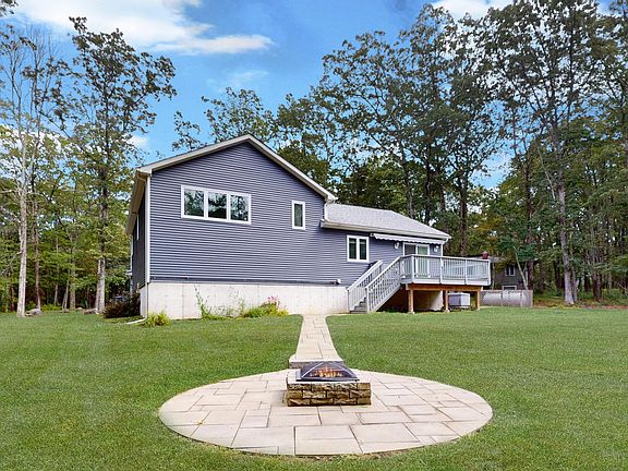 EVERYTHING YOU COULD EVER WANT AND MORE WITH THIS, ONE-OF-A-KIND, 3BR 2.5 FULL BATH, CUSTOM CONTEMPORARY SPLIT-LEVEL HOME w/ 2-CAR GARAGE, COVERED FRONT PORCH, BACK DECK w/ ELECTRIC RETRACTABLE AWNING, BRIGGS STRATTON WHOLE HOUSE GENERATOR, AND A BEAUTIFULLY LANDSCAPED YARD w/ PAVER WALKWAY TO FIREPIT; ALL SITTING PEACEFULLY ON .7 ACRES ON A CUL-DE-SAC, IN RENOWNED HEMLOCK FARMS, LORDS VALLEY, PA. Built less than 5 years ago, this newer home showcases sprawling gray hardwood plank floors, soaring cathedral ceilings, and central A/C w/ propane forced air heat all controlled by a Nest thermostat. The open concept main level blends a spacious living room featuring a stunning floor-to-ceiling slate stone electric fireplace w/ an ultra-modern L-kitchen offering granite counters, stainless steel appliances, propane range/oven, & LG Smart refrigerator w/ touchscreen, plus a large dining area w/ sliding doors to the back deck. Upstairs, the master suite impresses w/ a huge walk-in closet w/ custom shelving and a spa-like ensuite boasting glass barn doors, Top-Of-The-Line rainfall shower system w/ hand-held wand, and multiple massage jets. Two additional large bedrooms share an upgraded 2nd full bath that mirrors the master bath w/ its advanced shower system. The lower level provides a huge den/bonus room, perfect for a 2nd living space, playroom, sports bar room, or guest bedroom along w/ a subway-tiled laundry/half bath featuring washer, dryer, & slop sink. The large 2-car garage includes storage w/ workspace, while a massive dry crawlspace offers even more room. All of this is set within the renowned gated community of Hemlock Farms, offering lakes, beaches, indoor/outdoor pools, fitness center, tennis, hiking trails, clubhouse, &security. Located in the heart of the Poconos, near skiing, golf, dining, and shopping, this home blends modern comfort, timeless design, & world-class amenities into one exceptional property you'll be proud to call home!