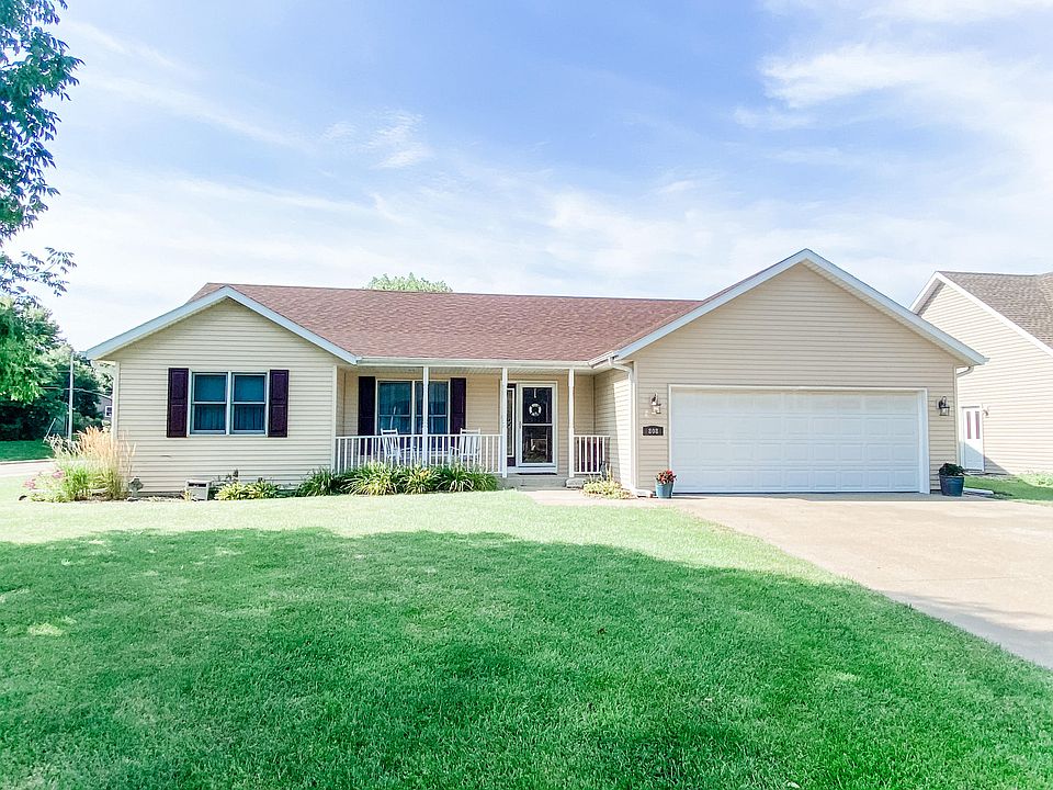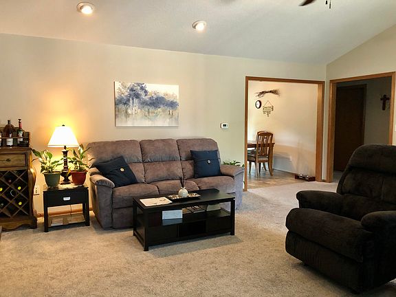 Beautiful well kept ranch with main floor laundry and an excellent floor plan with 2 bedrooms & bath on one end of the house & the master suite on the other end. This home features vaulted ceilings, newer floor coverings and paint, large master bath, new fixtures and appliances, covered deck, level fenced yard, large storage shed, and more. Basement is studded and electrical work complete, ready for sheetrock.