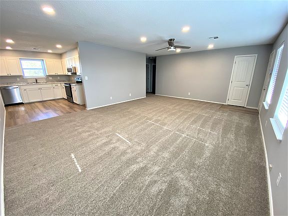 Great floor plan- New carpet, vinyl floors, paint inside, counter tops in kitchen, DW, microwave, stove & vanity in half bath. Updated roof and windows, outside porch, brick & vinyl siding. New central & air. Blinds throughout house.