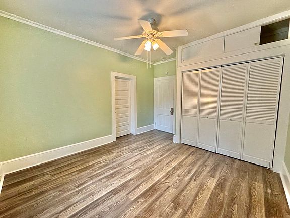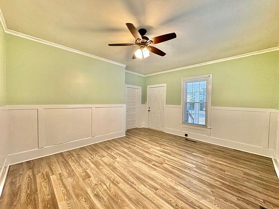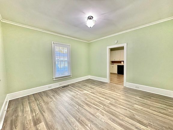 Discover the charm of this delightful single-family home, ideally situated in a vibrant neighborhood. Boasting 2 bedrooms and 1 bathroom spread across a generous 1,176 sq ft of thoughtfully designed living space, this residence combines comfort with style. The welcoming covered front porch, adorned with elegant white pillars, invites you to explore further. The classic light beige or white vinyl siding adds to its appeal, ensuring a timeless facade. Step inside to experience a warm and inviting ambiance characterized by pale yellowish-green walls in the main living area, accented by light off-white wainscoting, creating a vibrant yet soothing environment. The light beige laminate flooring ties the space together, while a centrally located ceiling fan enhances comfort, circulating air throughout the room. The abundant natural light flows in, making this area perfect for relaxation or entertaining. Venture into the bedroom, where light sage green walls offer a tranquil retreat. The built-in wardrobe maximizes storage while maintaining an uncluttered look. Complemented by light brownish-gray laminate flooring and a ceiling fan, the room strikes a balance between style and functionality, ensuring a peaceful night's rest. The kitchen is a true focal point, featuring modern white cabinetry and a light beige/tan laminate floor that seamlessly integrates with the overall decor. With a light, off-white countertop and standard appliancesincluding a refrigerator, dishwasher, stove/oven, and sinkit meets all culinary needs while maintaining an aesthetically pleasing appearance. Adjacent to the kitchen, the laundry room is practical yet stylish, showcasing light sage green walls with wood paneling. Modern stacked appliances are easily accessible, and the bright lighting creates a welcoming space for completing chores. Wall-mounted cabinets provide additional storage, enhancing organization. The outdoor space is an oasis of tranquility, featuring a wooden deck with a light grayish-brown finish and a dark brown metal railing. Equipped with a small table and chairs, this area is perfect for morning coffee or evening relaxation. A grassy backyard enclosed by a white picket fence provides a serene environment, beautifully framed by mature trees, offering a perfect retreat from everyday life. In summary, this charming home presents an exceptional opportunity for those seeking a well-maintained and aesthetically pleasing living space. With its classic architecture, inviting interiors, and expansive outdoor area, it's the perfect place to create lasting memories. Don't miss the chance to make this haven your own. $20 Technology Fee and a one-time $125 Admin Fee