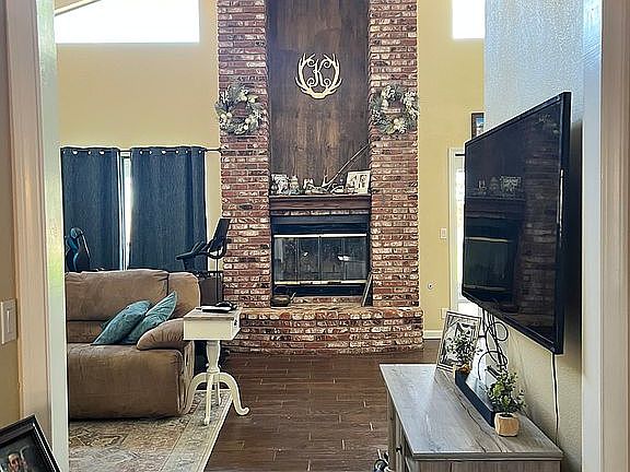 You can have a remarkable view of the mountains - right from your backyard! This beautiful 3 bedroom, 1.75 bath has a grand living room with vaulted ceilings and a showstopper brick fireplace. It has a functional open floor plan, updated spacious kitchen with granite countertops, updated tiled bathrooms, and two car garage. Spacious carpeted bedrooms including master suite with walk in closet and double sink bathroom. The backyard oasis is ready to entertain with a newly resurfaced in-ground pool, large covered patio, large yard and surrounding shrubs and trees. Even a side yard for your boat rv or desert toys. DUAL COOLING!