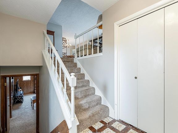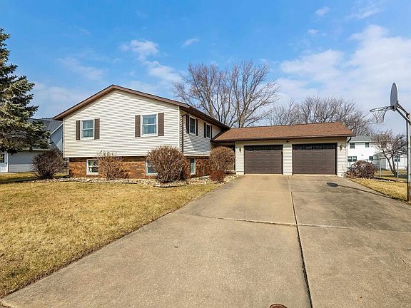 Eldridge home for sale! There's a lot to love in this 4 bedroom, 3 full bathroom, 2 car garage home in a great neighborhood close to North Scott Schools. Large living room and dining room are great for entertaining, as is the finished daylight basement with rec room and brick fireplace. The primary bedroom boasts dual closets and a fully updated ensuite bathroom with new tiled shower, vanity, toilet and flooring. The 2 car garage is oversized with an additional area great for storage or a workbench. Updated luxury vinyl plank flooring in dining room and kitchen and newer carpeting throughout, new blinds throughout too. AHS Home Warranty included with acceptable offer.